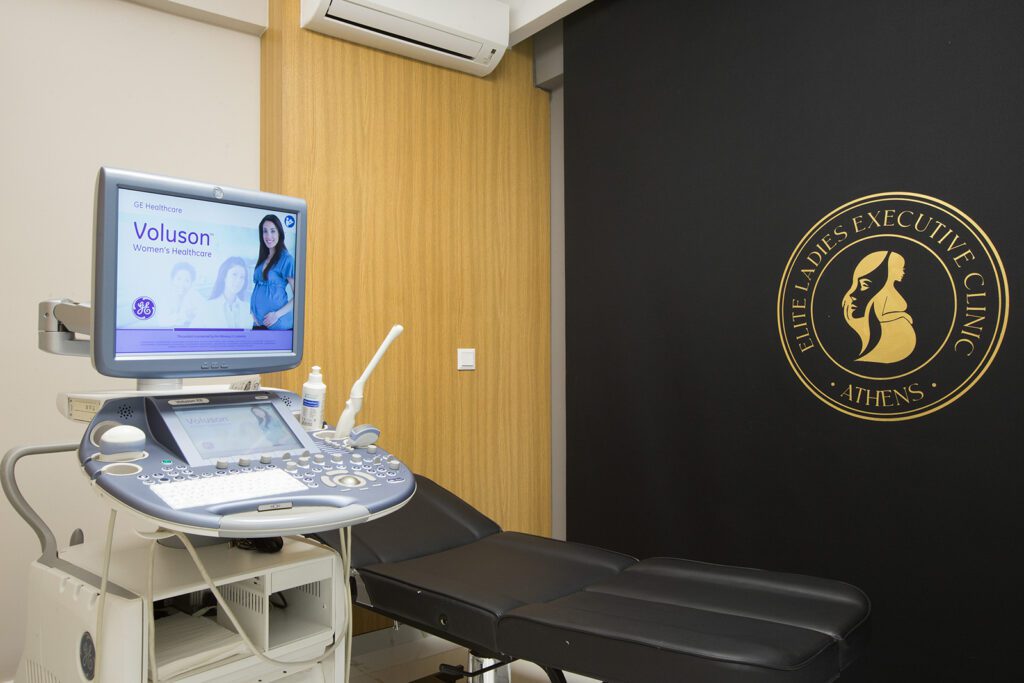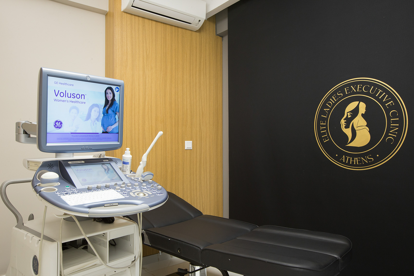 Πλήρης προληπτικός έλεγχος που περιλαμβάνει γυναικολογική εξέταση, τεστ Παπανικολάου, υπερηχογράφημα μήτρας και ωοθηκών, καθώς και συζήτηση για θέματα υγείας και πρόληψης.